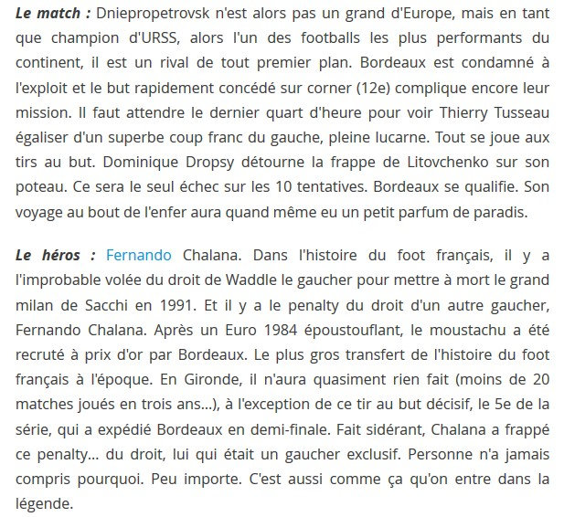 Quelques semaines après la première, Bordeaux a obtenu deux nouvelles citations dans le « Top 60 des plus beaux coups des clubs français en Coupe d’Europe », établi par le site d’Eurosport.