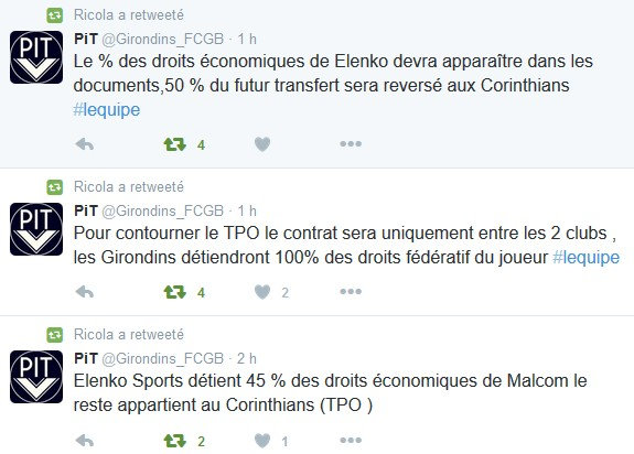 Vanté par tout le monde au Brésil, celui sur qui Bordeaux a misé gros (on parle de 5 millions d’euros pour les Corinthians, voire de 9 millions au total) est au cœur d’une opération financière visant à contourner la TPO (tierce-propriété), interdite dans certains pays… dont la France. Selon L’Equipe, et même si la société Elenko Sports continuera de détenir 45% des droits économiques de Malcom, Bordeaux détiendra bien 100% de ses droits sportifs, dont le rachat a été négocié entre les clubs, sans qu’un tiers n’intervienne directement.