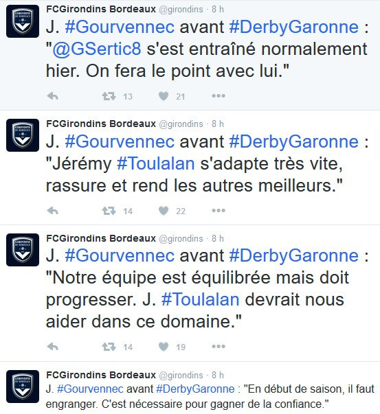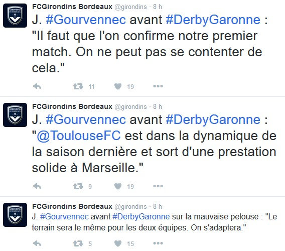 « Toulouse est une équipe qui s’est sauvée l’an passé, avec Pascal Dupraz. C’est une équipe qui a perdu quelques joueurs, notamment Ben Yedder, l’effectif a bougé, mais ça reste une équipe saignante. Pour nous, il s’agit de confirmer notre victoire sur Saint-Étienne. L’important en début de saison c’est d’engranger, mais pas n’importe comment. Après le mois d’août, il y aura la mini trêve, juste avant le déplacement à Lyon, mais avant il y a Toulouse, et ensuite la venue de Nantes.