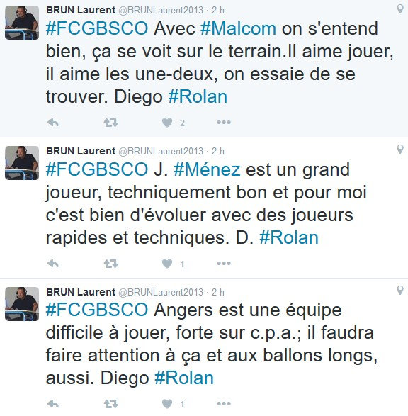 Sur une pelouse qui va mieux, les Girondins vont recevoir le SCO d’Angers ce samedi, à Gallice, pour la 5ème journée de Ligue 1. Un match où l’attaquant uruguayen du FCGB, Diego Rolan, déjà auteur de 2 buts en 2016/17, aimerait briller, profitant de l’envie de jouer (re)trouvée de son équipe et de sa complicité avec Malcom et Jérémy Ménez, ses coéquipiers offensifs.