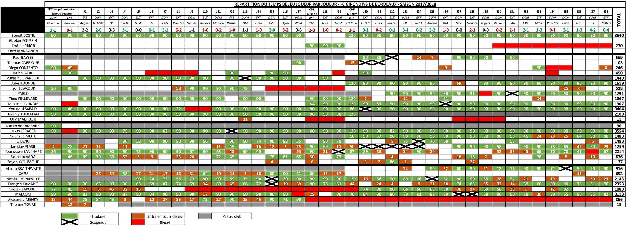 Retrouvez le tableau des temps de jeu des Girondins cette saison grâce @Thibaud_GdB