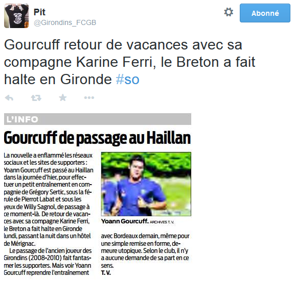 Malgré les faits (ses deux présences à Bordeaux ces derniers jours, en compagnie de Labat et même de Sertic dont il est resté proche), Sud Ouest avance que le dossier est « au point mort », même si Willy Sagnol a rencontré avec l’ex lyonnais, libre de tout contrat, et qu’il en ferait une cible. Même son de cloche du côté du Parisien, qui cite le président Triaud affirmant qu’il n’y a rien qui laisse penser à un retour et qu’il ne s’agit que d’un coup de main du club vers un ancien joueur, qui ne sera pas là demain pour la reprise de l’entraînement.